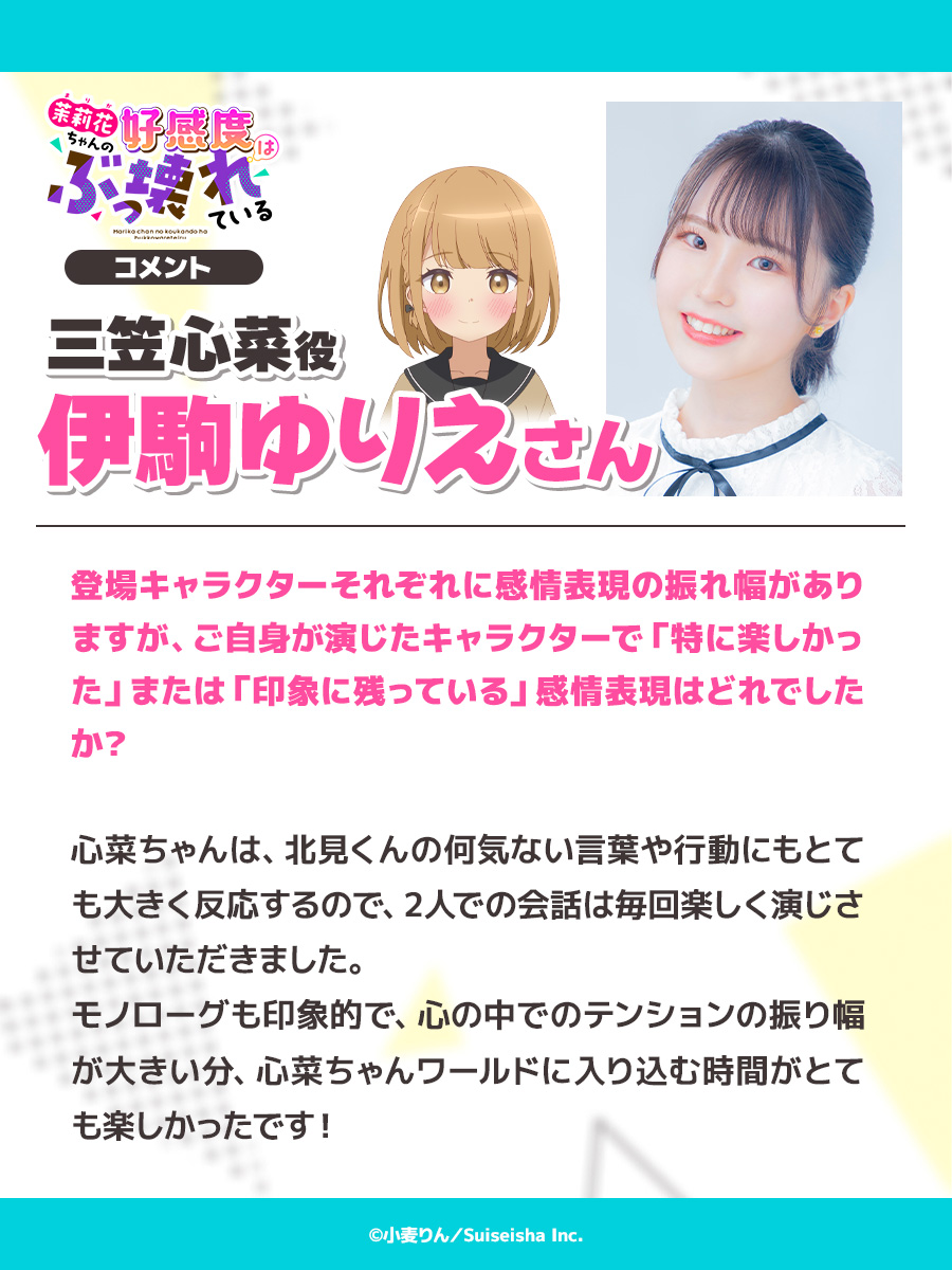 【キャストコメント】三笠心菜役 伊駒ゆりえさん